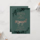 Tipografia rosa dourada Convite para festa de noivado de casamento verde-floral com folhagem de cor verde-d-água pintada manualmente. O plano de fundo da cor verde é totalmente personalizável
