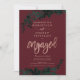 Tipografia rosa dourada Convite para festa de noivado de casamento verde-floral com folhagem de cor verde-d-água pintada manualmente. O fundo de cor vermelho é totalmente personalizável