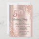 Convites Rosa Dourada Glitter Drips 50th Festa de aniversár