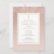 Apresentando elegante rosa dourado glitter ombre e um elegante crucifixo de ouro, este primeiro convite de humor sagrado pode ser personalizado com suas informações especiais. Projetado por Thisnotme©