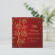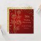 Cartão de 50º Aniversário de Casamento com rosas douradas estilizadas e confetes contra um fundo vermelho. No verso do convite há um confete dourado sobre um fundo dourado