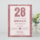 Este convite para o rosa gold 28º aniversário apresenta um falso rosa de ouro número 28, é na moda e elegante, Sparkly e chic, Glam blush pink, surpresa de excelente para uma celebração de aniversário milestone.