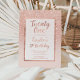 Um moderno, bonito, chic e elegante chá brilhante rosa de ouro, branco, com 21º convite de aniversário de cor rosa esbranquiçado, com padrão rosa ouro ombre a desaparecer sobre um fundo rosa com um elegante quadro de ouro perfeito para uma aniversário de 21 anos princesa, perfeito para ela, a modista que ama o padrão moderno e o vidro