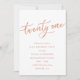 Rosa Dourado aniversário de 21 anos Invances: design rosa aniversário de 21 anos de ouro Bonito com convite de festas com folha de ouro brilhante rosa "vinte e um" escrito em tipografia de escrita manual com letras. A inscrição temporária preenche os detalhes da festa. [Note que, embora os elementos deste design possam ser impressões para se parecerem com folhas, não é utilizada nenhuma folha ou tinta metálica para criar os convites - a folha de ouro rosa é um efeito impresso.]