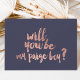 Uma moderna, original e chic tipografia de pincel com letras à mão em folha de rosa dourado falsa você será meu cartão paige boy em um fundo azul meia-noite elegante e simples personalizável