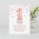 Convidar primeiro aniversario de balão de número ouro de rosa da Tendy com o confete de folha fina personalizável para suas especificações de evento.