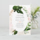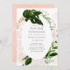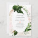 Trendy greenery watercolor primeiro convite para a comunidade sagrada com quadro geométrico rosa dourado. Os florais cor-de-rosa pincelados e a lavagem com aquarela complementam o design.
