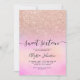 Rosa Dourado gradiente ombre brilha doce convite de aniversário 16 no pastel rosa unicórnio arco-íris iridescente holográfico iridescente Adicione sua foto no fundo.