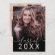 Um moderno, bonito, cor-de-rosa, cor-de-rosa, gradiente de brilho dourado, com convite de festa de formatura rosa pincelado e branco suave, com 5 da sua fotografia personalizada, com padrão ombre brilhante a desaparecer sobre um fundo rosa e uma caligrafia moderna de escrita na moda.