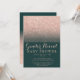 Chic faux rosa gold glitter green emerald gender revela coleção de convites para chás de fraldas. Um chá brilhante, moderno e bonito, de rosa dourado, com um bloco de cor verde, com o padrão rosa dourado ombre a desaparecer sobre um fundo colorido.