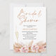 Rosa Dourada Calliografia Boho Pampas Chá de panela Bohemian inspirou chá de panela com um adorável arranjo floral seco e de grama pampas na base do design em tons naturais e borrão. A design inclui também um copo de champanhe flutido que pode ser removido.