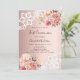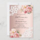 Um convite elegante da Primeira Comunhão. Um fundo rosa de gradiente dourado decorado com florais, rosas, rendas e uma cruz de ouro cor-de-rosa e rosa. Personalize e adicione um nome e detalhes.