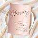 Um convite moderno e na moda para uma festa de aniversário 70. fundo de gradiente rosa dourado e a palavra Setenta escrita com letras elegantes de grandes guiões em rosa dourado escuro. Personalize e adicione um nome e detalhes da parte.