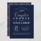 Este convite para o chá de casamento apresenta uma bela tipografia de ouro rosa em fundo de marinho. Você pode personalizar a cor de fundo.