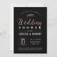 Este convite para o chá de casamento apresenta uma bela tipografia de ouro rosa sobre fundo preto. Você pode personalizar a cor de fundo.