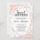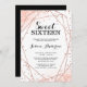 Rosa de ouro moderno e convite de aniversário 16 preto doce. Este design apresenta uma borda falsa e formas geométricas com cantos de aquarela. Os designs são ilustrações/gráficos impressos planos - NÃO É O GLITTER OU FOIL REAL.