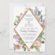 Linda mão pintou românticas flores do Jardim de Algodão Inglês e flores silvestres com uma estrutura moderna e geométrica de dourado rosa, falso, faz uma coleção elegantemente simples de convites para casamento. Eterno, clássico e clássico, mas com tendências contemporâneas, tema chico. Perfeito para um jardim ao ar livre, uma safra botânica, um cenário de fazenda ou celeiro ou uma celebração do estilo boho, boêmia. Uma elegância perfeitamente refinada e tema romântico do casamento. O fundo é mostrado em branco, mas você pode mudá-lo para qualquer cor que desejar. Um conjunto completo de produtos está disponível para corresponder a casamentos, chás de panela ou festas de aniversário. Arte pintada e direitos autorais por Audrey Jeanne Roberts, todos os direitos reservados.