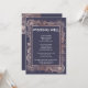 Flores modernas e elegantes em ouro rosa impresso em falso sobre cartões azul-marinho de votos de felicidade. Este design clássico e sofisticado é perfeito para o casal que se casa com estilo, tendência e sofisticação. Personalize com sua própria mensagem na frente e um monograma personalizado no verso. Todos os designs são impressos com foto.