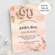 Um fundo rosa dourado, cor-de-rosa-claro. Decorados com ouro rosa e flores, rosas, grama-pampas. Personalize e adicione um nome e detalhes da parte. O número 90 é gravado com uma fonte no estilo do balão.