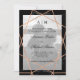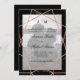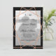 Estes convites de casamento modernos e elegantes apresentam um fundo de mármore preto com um design geométrico de ouro rosa. Sua foto pessoal está no centro, com sua formulação de convite de casamento aparecendo em uma sobreposição.