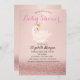 O convite para o chá de fraldas bonito apresenta um glitter rosa dourado com um chá de fraldas de bebê cisne. Esses convites para chuveiros de bebês são facilmente personalizados para seu evento simplesmente adicionando seus detalhes.