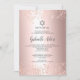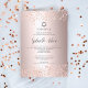 Elegante folha metálica brilhante rosa de ouro e estrela de confete de David com o nome hebraico Bat Mitzvah e o confete de brilho de ouro rosa. Um convite simples e chique.