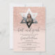 Estrela da máscara de fotografia de David, Rosa dourada pastel pincelado, blush, escrita rosa, tipografia Bat Mitzvah convite de festas .Perfeito para um partido elegante moderno. Adicione seu nome hebraico.