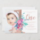 Rosa gold floral número 1 e carregue seu primeiro aniversario fotográfico cor-de-rosa pincelado com pinturas elegantes cor-de-rosa e turquesa aquarelas em letras rosa de ouro cômico