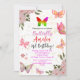 Convites Rosa dourado roxo menina da borboleta elegante ani