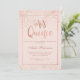 Mis quince escrito com tipografia rosa dourada. Um moderno e bonito chá brilhante rosa de ouro e elegante, com um bloco cor-de-rosa pincel pastel Quinceañera convite de aniversário com um quadro de ouro rosa geométrico.