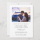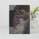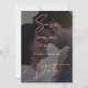 Este moderno salvamento da data apresenta a moderna caligrafia rosa dourada e um visual falso de vellum. Na frente da placa, "Save our Date" (Salvar nossa data) é escrito em um script rosa gold em uma foto de cheio. Os nomes dos casais, a data do casamento e a localização do casamento estão escritos em branco. O vellum falso permite que a sobreposição de texto se destaque sobre a foto vertical. Na parte de trás da data de salvamento, adicione outra foto e detalhes do casamento, como o site do casamento.
