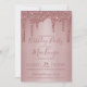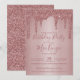 Rosa Dourado Sparkle Glitter Drips A Qualquer Ano Convite Aniversário com pingos de falso brilho e fundo rosado metálico brilhante. Há um filtro opcional para ajudar a desativar o texto branco na parte inferior; ele pode ser desligado clicando em "personalizar mais" e excluindo essa camada. Projetado por Cedar e String. Para personalizar ainda mais, clique no link "personalizar mais" e use a ferramenta design para modificar o design. Se precisar de assistência ou itens correspondentes, entre em contato conosco.