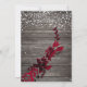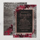 Uma tipografia rosa de ouro moderna, chica e elegante Convite verde de Natal Floral com folhagem de folha de cor vermelha, pintada à mão, numa madeira castanha rusticada, com neve branca e flocos de neve.