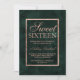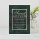 Um moderno, bonito e elegante rosa-gold Sweet 16 convite de aniversário com falso quadro rosa de ouro num bloco moderno e elegante de aquarela verde florestal.