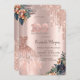 Derramamento elegante de ouro rosa, flores escuras e elegantes vestidos em fundo de ouro rosa. Belo convite que pode ser personalizado com seu nome. Selecione o botão "personalizar" para alterar o estilo, a cor e o tamanho da fonte.