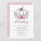 Elegante, abóbora, convite para o chá de fraldas, com belas abóbora branca a aquarela, flores em rosa poeirento, eucalipto verde e tipografia moderna. O convite do chá de fraldas personalizado original pintado à mão moderna com aquarela. Você pode personalizar o texto, o estilo da fonte, a cor e o tamanho em frente e atrás do convite.