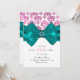 Convites Rosa e Branco Damask Tea com Laço Glamouroso Festa