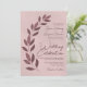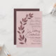 Este convite para o casamento apresenta um design moderno com texto justificável e um tiroteio de folhas pintadas à mão em tons de rosa e massa poeirenta. A inscrição apresenta uma fonte moderna e o fundo da burgundy marmoreada adiciona textura e profundidade. Simples, rústico, exclusivo e chic, este convite é uma forma excelente de adicionar estilo contemporâneo à elegância clássica.