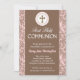 Seja único com este estilo de vintage cor-de-rosa e contorno floral marrom Primeiro convite à Santa Comunhão. É perfeito para a comunhão de uma menina.