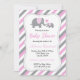 Convites Rosa e Cinzas Stripes Bebê Elefante | CHÁ DE FRALD