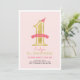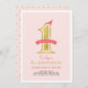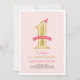Celebre seu dia especial com este convite de festas moderno do primeiro aniversario. Este design apresenta a tipografia dourada "1" com uma faixa cor-de-rosa rosa e um chapéu de festa fofo. Este convite simples e fofo será perfeito para uma festa de aniversário de uma garota teme rosa e dourada.