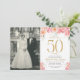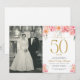 Convite de Aniversário de 50 Anos com Florais Rosa e Dourado Elegantes e Foto | Celebrando 50 Anos