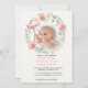 Celebre o Batismo da Criança da sua doce menina com um belo convite de guardas que mostra sua foto cercada por uma delicada pincel d'água e coroa floral rosa de marfim com folhagem. Direitos autorais, Audrey Jeanne Roberts.