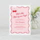 Celebre seu evento especial com este Chá de panela "Ela é a cereja no topo", rosa personalizado, perfeito para uma cereja no tema do chá de panela superior. Esse convite complementa temas de cereja chá de panela, misturando vermelho e rosa para um tema de chá de panela de arco de coquete. Ideal para ideias de chá de panela de fevereiro e temas de chá de panela Namorados, ele combina ideias de chá de panela rosa com ideias de chá de panela de namorados para uma celebração chic e memorável