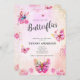 O Chá de panela Pink he Dá-me Borboletas apresenta borboletas cor-de-rosa e rosa e douradas com efeito brilhante dourado e fundo pastel de aquarela macia. Inscrição do rico de script. O convite para o tema do chá de panela da borboleta é tão especial quanto a noiva a ser.