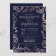 Ouro cor-de-rosa do falso elegante, moderno, e chique e teste padrão tirado dos azuis marinhos mão floral na moda, convites da festa de solteira. Este design clássico e sofisticado é perfeito para que a noiva elegante, na moda, e à moda seja. Personalize com sua própria mensagem na parte dianteira e um monograma personalizado na parte traseira. Todo o design do impressão da foto.