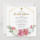 Cor-de-rosa elegante e rosada branca floral com design de texto de guião verde-sábio "Confirmation" com estrutura geométrica de linhas em tons de ouro.