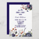Adicione sofisticação de eterno à sua papelaria de casamento ou decoração com esta lindamente detalhada coroa floral. Rosas azuis marinhos profundos estão graciosamente entrelaçados com margaridas suaves e folhagem delicada, formando um círculo equilibrado e elegante perfeito para enquadrar texto ou monogramas. Ideal para convites de casamento, cartões guardados, cartazes ou programas digitais, este design de alta resolução ao estilo aquarela combina romance clássico com encantos modernos.