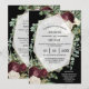 Uma bela ilustração com aquarelas que apresenta belas burlhas escuras e flores rosa florais brancas de marfim contra folhas de eucalipto e uma moldura hexagonal na qual modelos aparecem para sua redação personalizada. O quadro tem uma delicada linha de ouro falso à sua volta e o traseiro ofende o mesmo sentimento clássico luxuoso e elegante. Ambas são definidas contra um fundo preto da meia-noite que pode ser alterado para qualquer cor de sua escolha. Sinta-se livre para excluir ou mover os modelos e alterar o tamanho e o estilo das fontes, se preferir. Estes são ideais para pequenos casamentos familiares íntimos; para festas de casamento e festas de marcenaria de destino nacional ou para aniversário; ocasiões de noivado e aniversário especial.