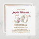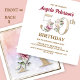 Organize a perfeita celebração do 50º aniversário com este elegante monograma floral de rosa A design no verso dos nomes das raparigas de aniversário, começando com a letra A. Numerais florais elegantes são usados no convite para acentuar a era comemorativa.